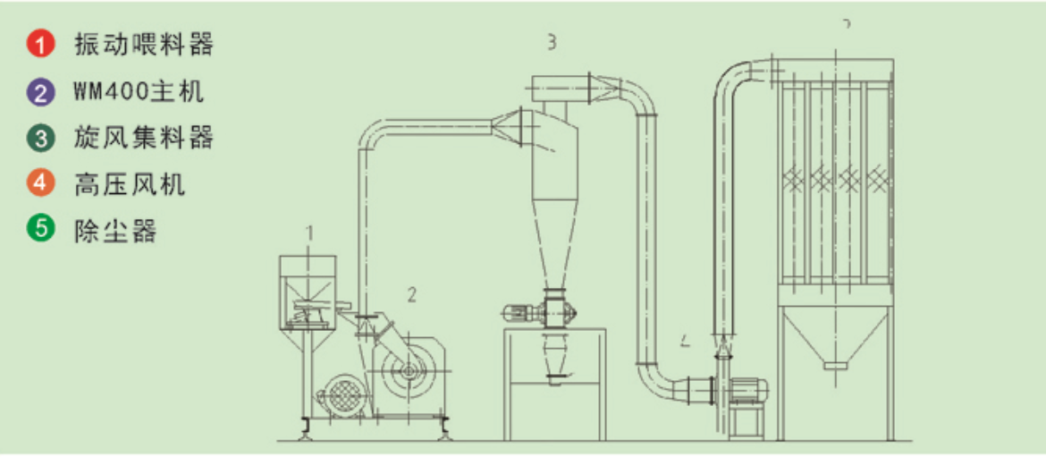② 可組成冷風(fēng)粉碎系統(tǒng):熔點較低的合成樹脂、塑膠或粉碎時容易發(fā)熱的物料,可配合冷風(fēng)冷卻粉碎。