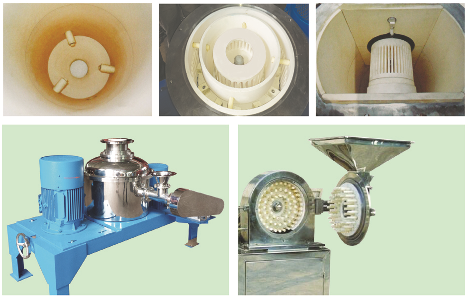 該設(shè)備由于其耐磨件采用了高純的氧化鋁和氧化錯等高耐磨材料,其他過流元件也采用了進(jìn)口高分子材料和高耐磨尼龍材料,保證了物料在粉碎過程中的高純度的要求,做到了無污染的效果。