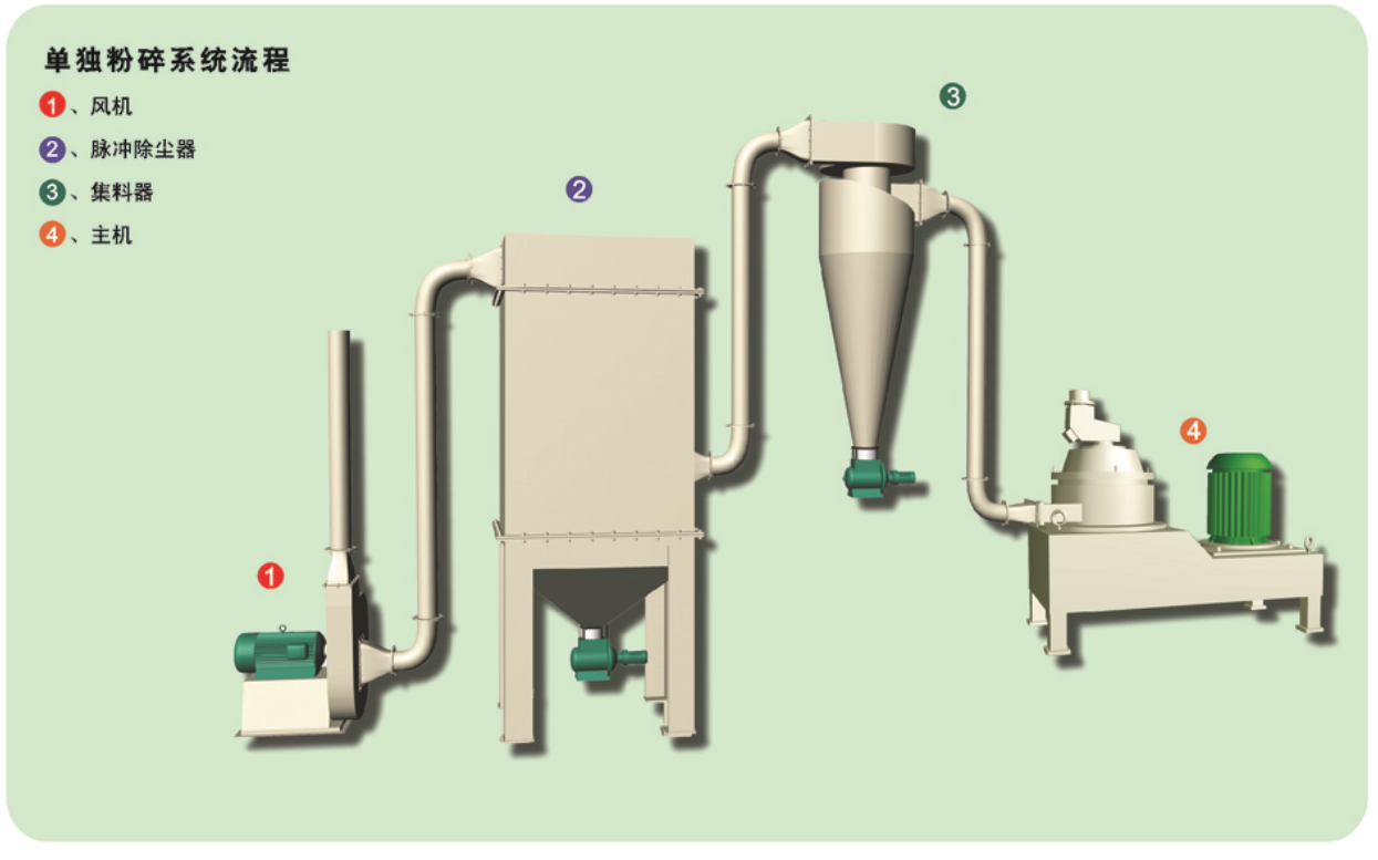 ④ 處理風量特大,粉碎時溫升低,特別適用于熱塑性和纖維性物料,產品粒度均勻;